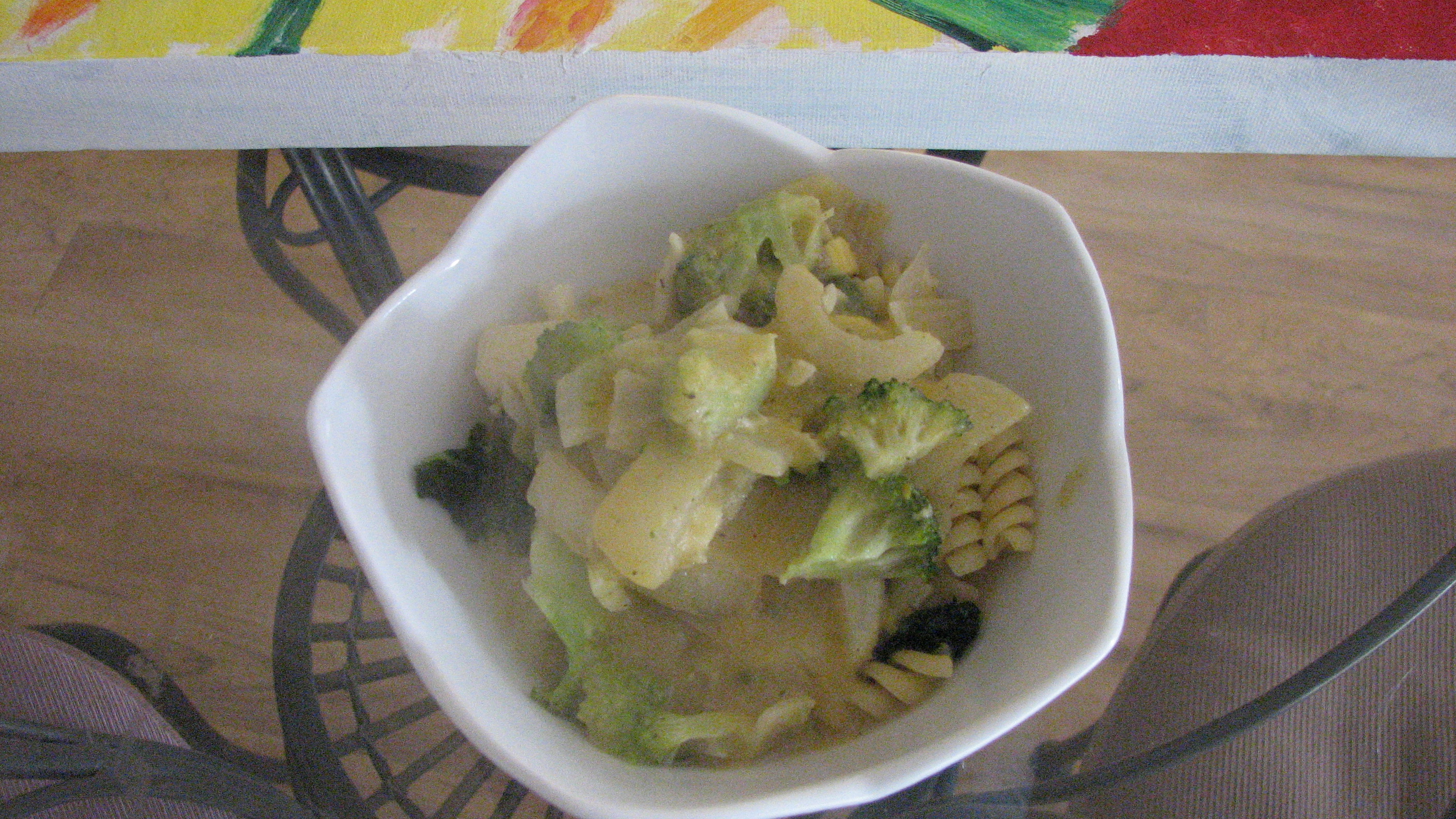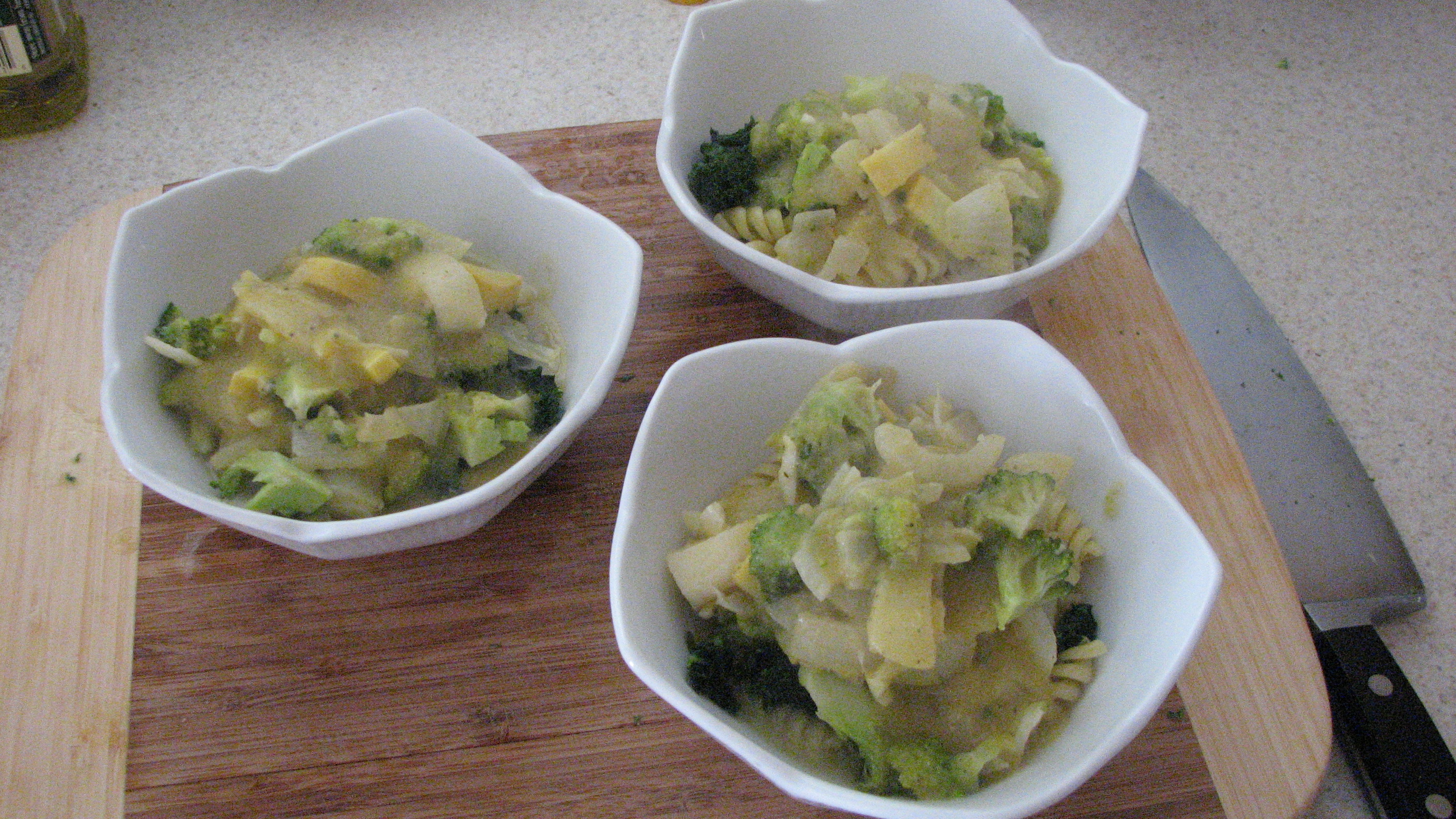 I just had some and it’s quite tasty. I could have added another 1/2 cup of pumpkin and, of course, fresh sage and parsley would have been wonderful, but alas (Bach again) it’s winter and it’s cold here, so no fresh herbs. Also, if it was just me I was cooking for, I would have added the broccoli and squash right before I was getting ready to drain the pasta. The veggies could have been just this side of raw, although they were tasty the way they were.