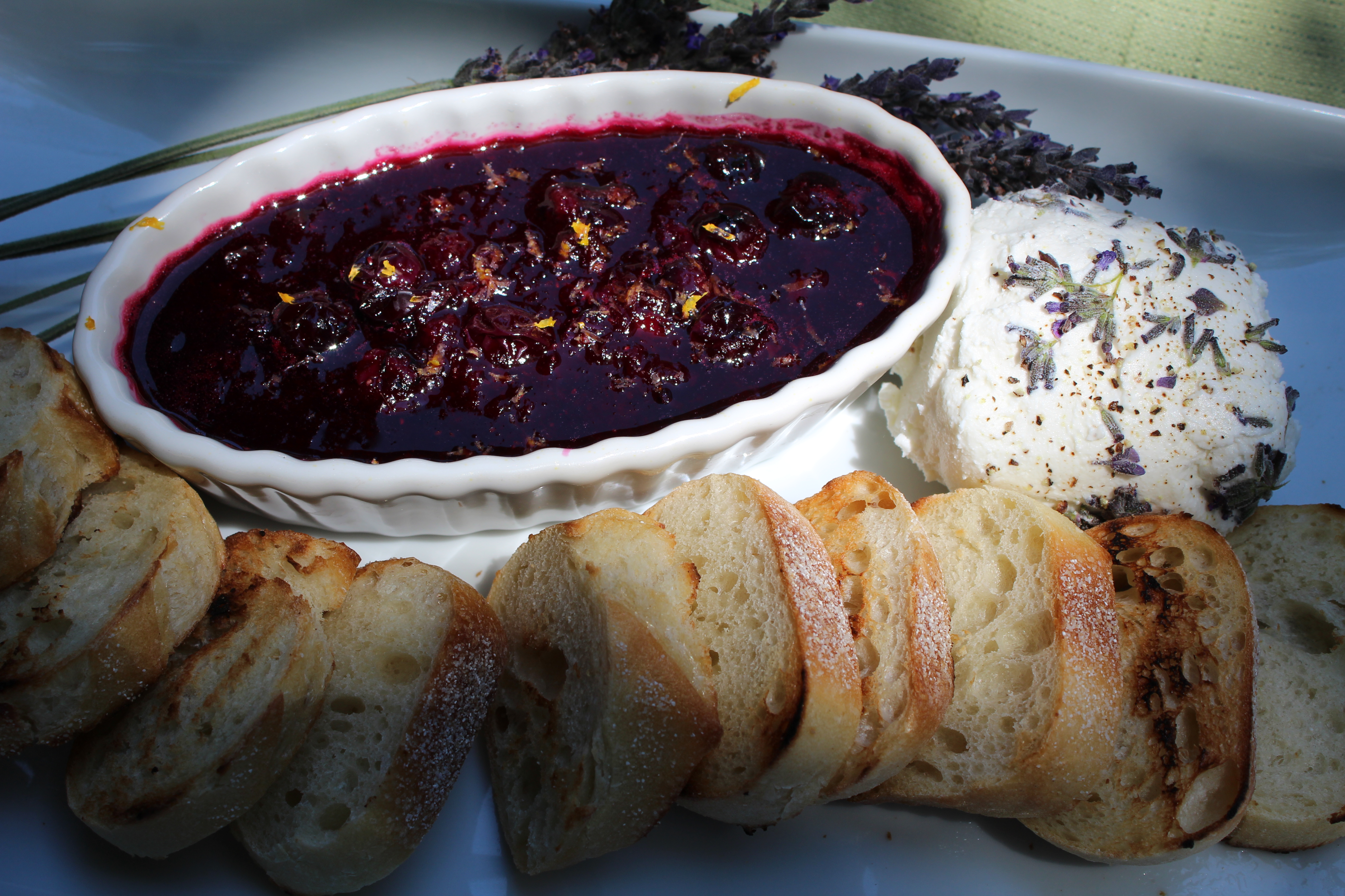 Lavender and Ginger Blueberry Jam with Goat Cheese Crostini
