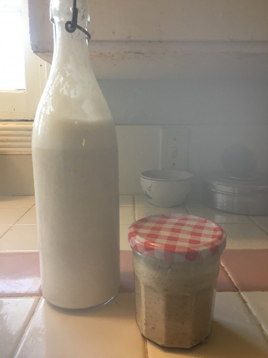 After tea time I placed the almonds that had soaked overnight in my blender to make almond milk. After I strained it, what to do with the little pieces of almonds and almond skin? I got out a little glass jar, placed 1 teaspoon of the wonderful prebiotic chicory in the jar with 1 teaspoon of grape seed ‘flour’ (nothing in it but grape seeds, that have been dried and milled into flour) which is a great source of resveratrol, and 1 tablespoon of chia seeds. Next I added the almond skins that I had strained from the almond milk, added a little more fresh almond milk and stirred! Placed in the frig for tomorrow’s breakfast.