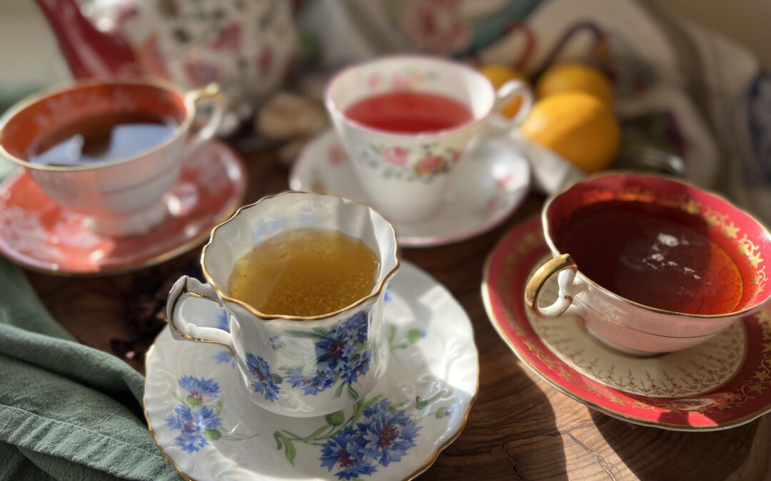 Turmeric and ginger help modulate inflammatory pathways. Willow bark supports pain relief. Black pepper enhances the absorption of turmeric’s active compounds. The result is a warming tea that supports circulation and may ease stiffness. P.S. These were my Mom’s tea cups. XO