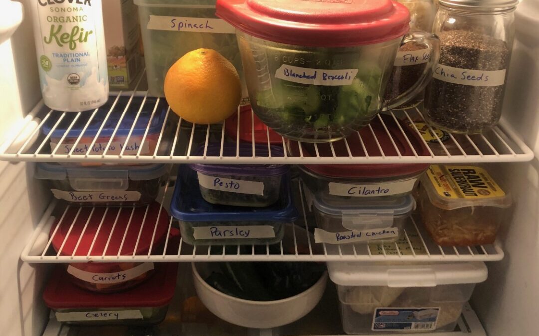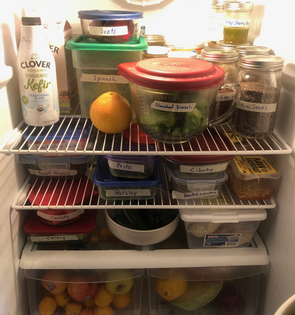 Personally, preparing means prepping all my veggies as soon as they are purchased, or if you’re lucky, picked out of your garden. I get out the containers, masking tape and a marker and have them on one part of the countertop.