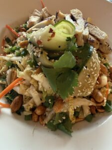 Roast some veggies – better than French fries. Arrange pepper chunks (try red, yellow, green, and orange), onion chunks, zucchini, or whatever you like, on a cookie sheet, sprinkle a little olive oil and a little seasoning, and roast at 400 degrees for about 5-7 minutes. Sprinkle with Parmesan cheese if you like.